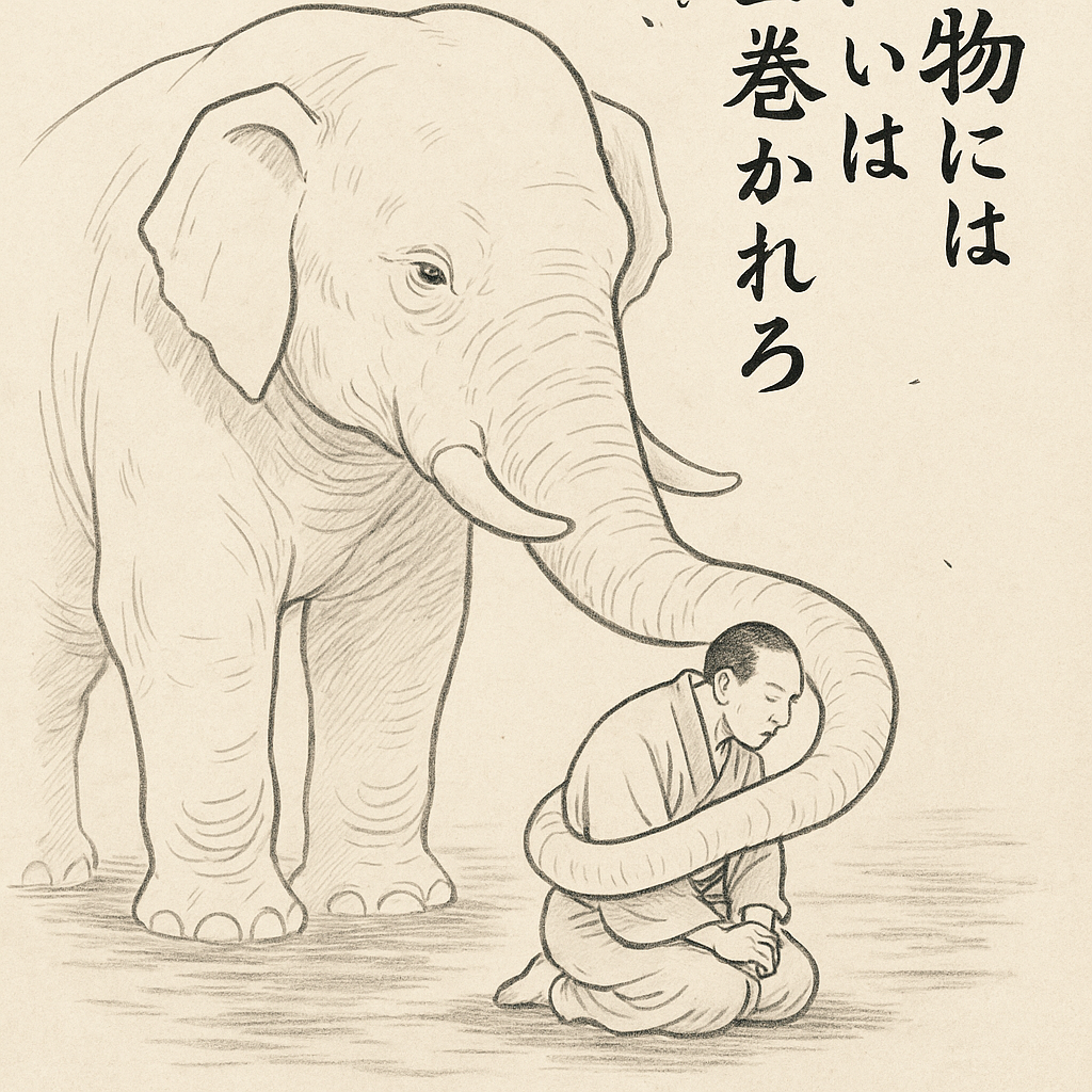 この話はもともと、「長いもの(象の鼻)には巻かれるな」――強大な力に近づくな、逆らうなという戒めであった。