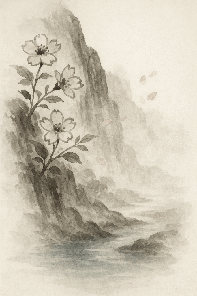 (山の花ひらきて錦に似たり、澗の水たたえて藍のごとし)『文選』の李白の詩句